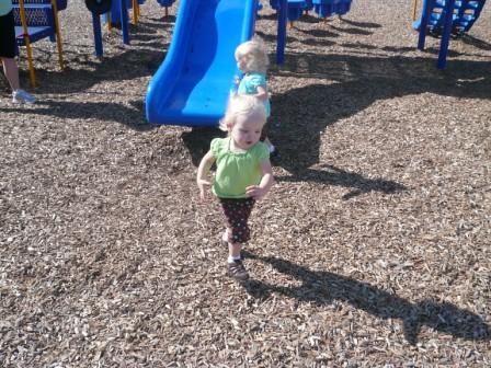 One afternoon, after work, playing in the backyard with our super cool sidewalk chalk, and well, just running around, which is always fun when you have two toddlers! :)